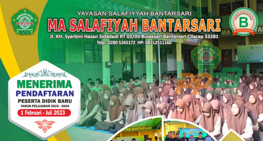 MA Salafiyah Bantarsari dengan senang hati mengumumkan bahwa pendaftaran peserta didik baru untuk tahun ajaran 2023/2024 sudah dibuka. Madrasah kami adalah Madrasah yang berdedikasi tinggi dalam memberikan pendidikan dan keterampilan yang baik untuk anak-anak Indonesia.Pendaftaran dibuka untuk siswa-siswi yang ingin melanjutkan pendidikan tingkat SLTA.